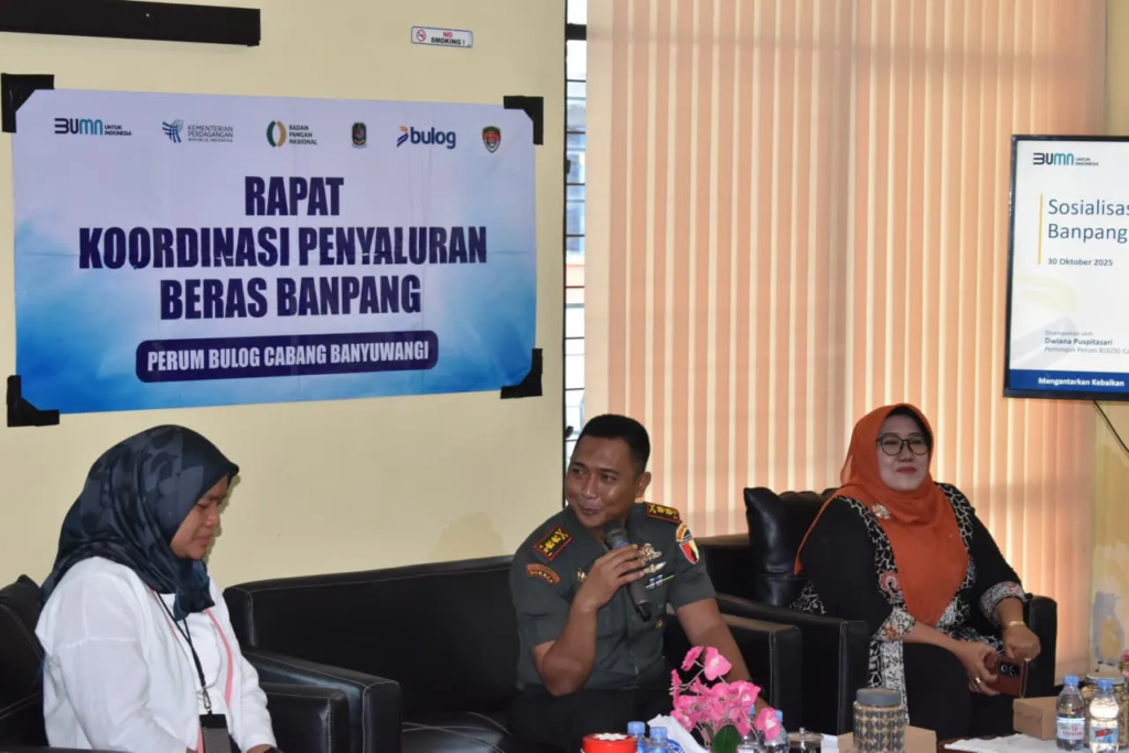 Dalam Rapat Koordinasi yang diselenggarakan di Kompleks Pergudangan Ketapang II Perum BULOG Banyuwangi, Dandim 0825/Banyuwangi Letkol Arm Tryadi Indrawijaya, S.H., M.I.P. menekankan bahwa penyaluran bantuan pangan bukan hanya sekadar kewajiban administratif, tetapi juga bagian dari pengabdian dan nilai ibadah yang harus dijalankan dengan hati yang tulus.